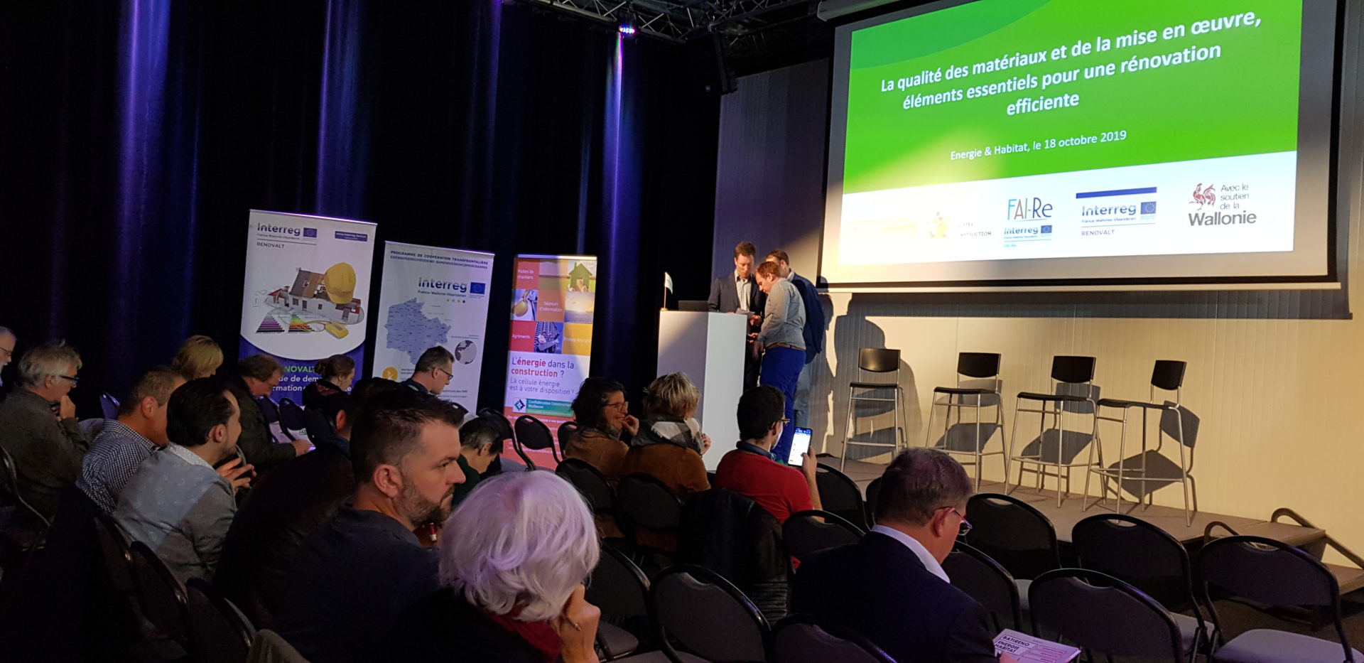 Ce matin, la CCW organisait une conférence intitulée « La qualité des matériaux et de la mise en oeuvre, éléments essentiels pour une rénovation efficiente » lors du salon « Energie et Habitat », à Namur. L’occasion pour nous d’échanger avec des interlocuteurs très intéressants, qui confirment tous la nécessité d’une bonne formation en rénovation énergétique…et une belle occasion également de présenter notre projet publiquement!
